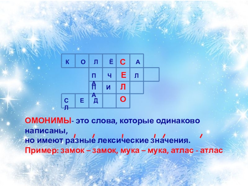 Пример: замок – замок, мука – мука, атлас - атлас