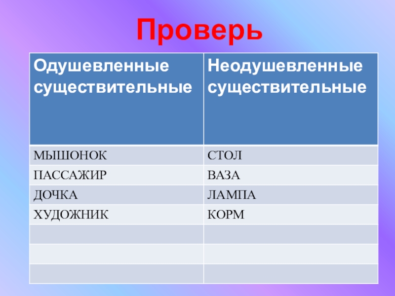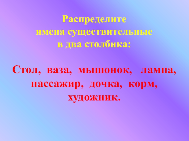 имена существительные в два столбика: