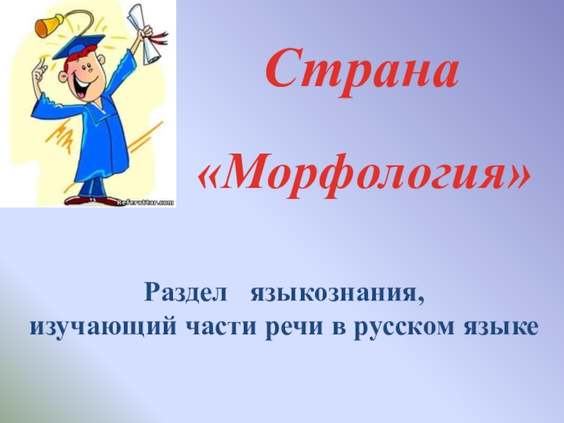 Страна«Морфология»Раздел  языкознания, изучающий части речи в русском языке
