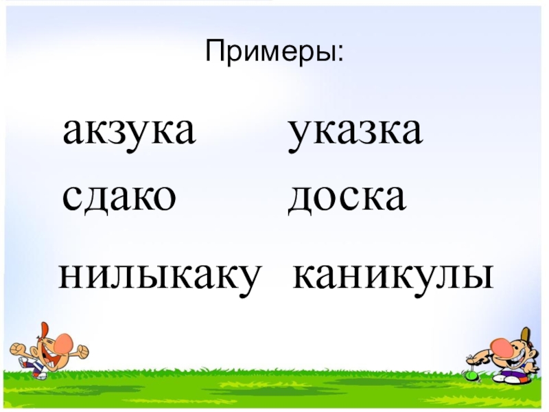 Например :палец, уши, окно, указка, мост, (ашкко=кошка)