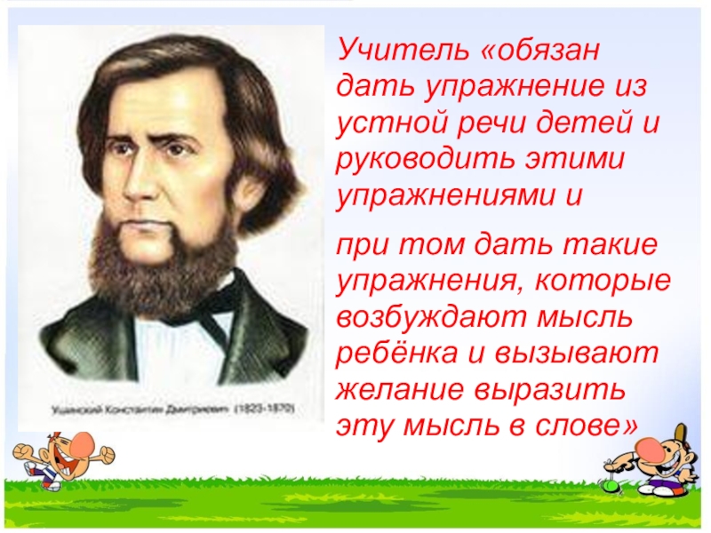 Слайд 3Учитель «обязан дать упражнение из устной речи детей и руководить этими