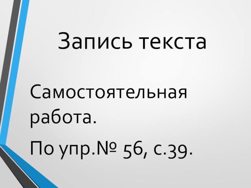 Запись текстаСамостоятельная работа.По упр.№ 56, с.39.