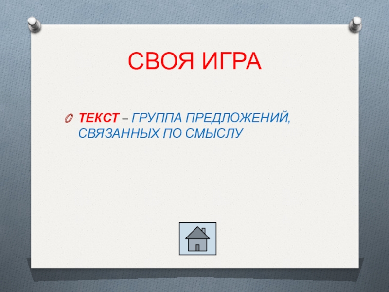 СВОЯ ИГРАТЕКСТ – ГРУППА ПРЕДЛОЖЕНИЙ, СВЯЗАННЫХ ПО СМЫСЛУ