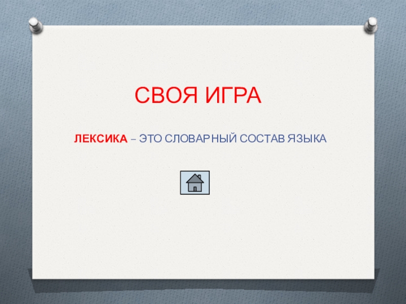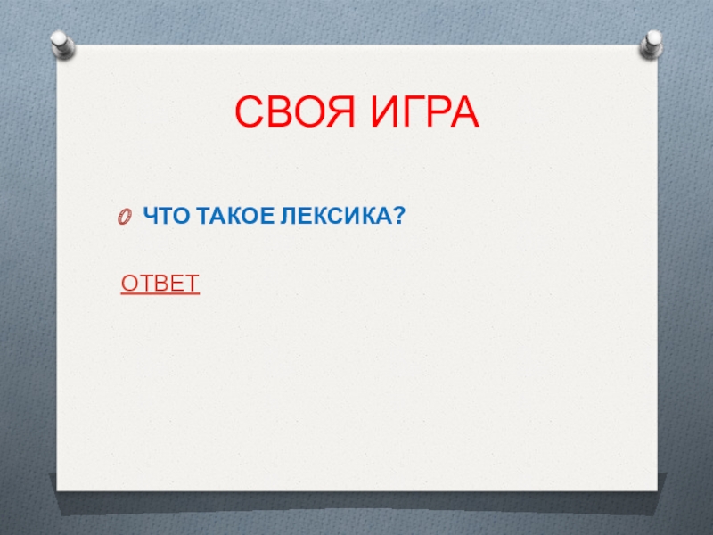 СВОЯ ИГРАЧТО ТАКОЕ ЛЕКСИКА?ОТВЕТ