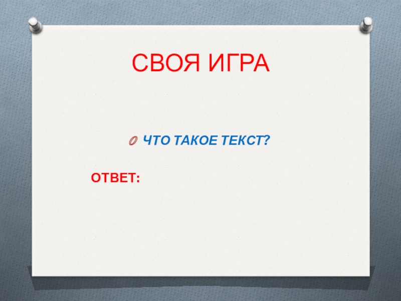 СВОЯ ИГРАЧТО ТАКОЕ ТЕКСТ?    ОТВЕТ: