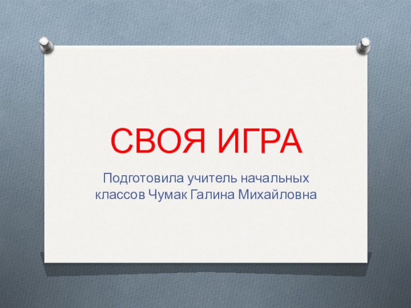 СВОЯ ИГРАПодготовила учитель начальных классов Чумак Галина Михайловна