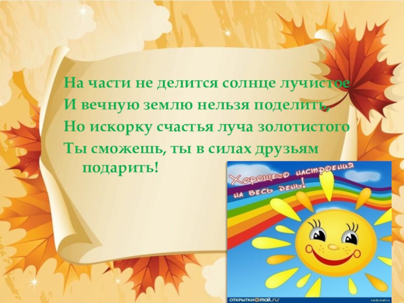 Это сайт презентаций, где можно хранить и обмениваться своими презентациями, докладами, проектами, шаблонами в формате PowerPoint с другими пользователями. Мы помогаем школьникам, студентам, учителям, преподавателям хранить и обмениваться учебными материалами.