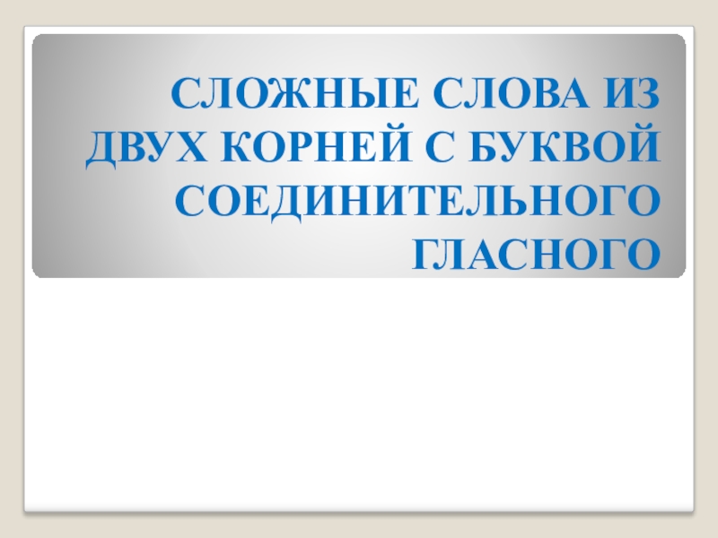 Слайд 1СЛОЖНЫЕ СЛОВА ИЗ ДВУХ КОРНЕЙ С БУКВОЙ СОЕДИНИТЕЛЬНОГО ГЛАСНОГО