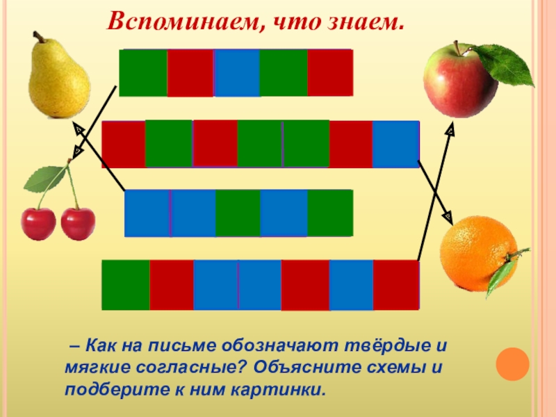 – Как на письме обозначают твёрдые и мягкие согласные? Объясните схемы и подберите к ним картинки.