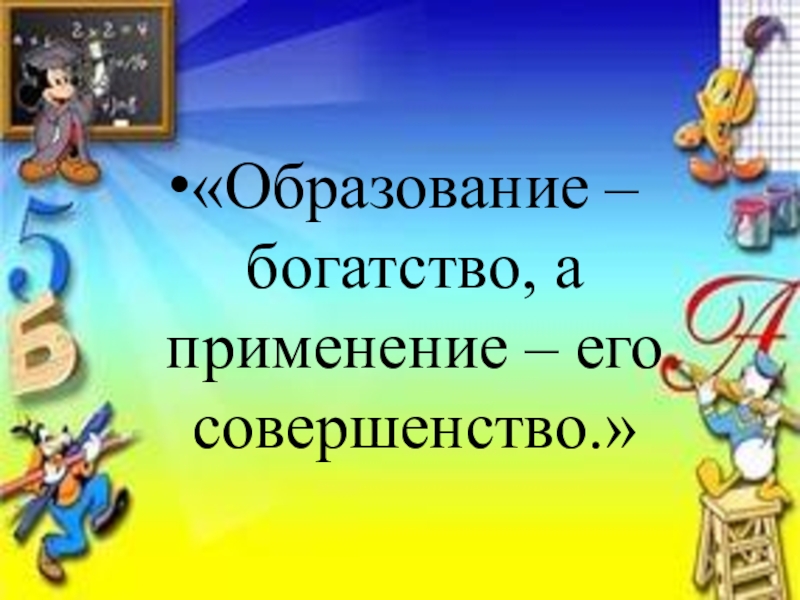 Слайд 2«Образование – богатство, а применение – его совершенство.»
