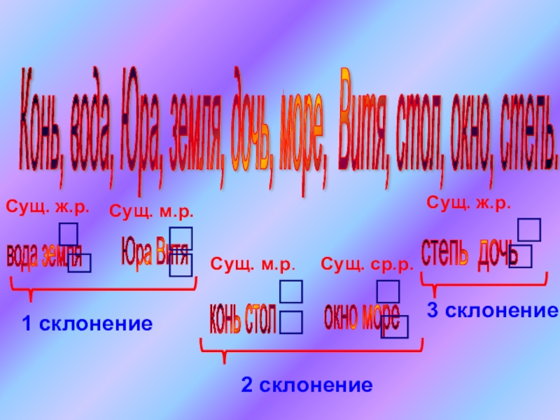 имена существительные мужского рода с нулевым окончанием и среднего рода с окончаниями - О, - Е в именительном падеже