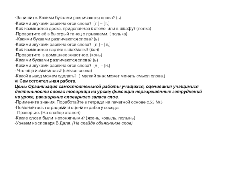 Слайд 15-Запишите. Какими буквами различаются слова? (ь)