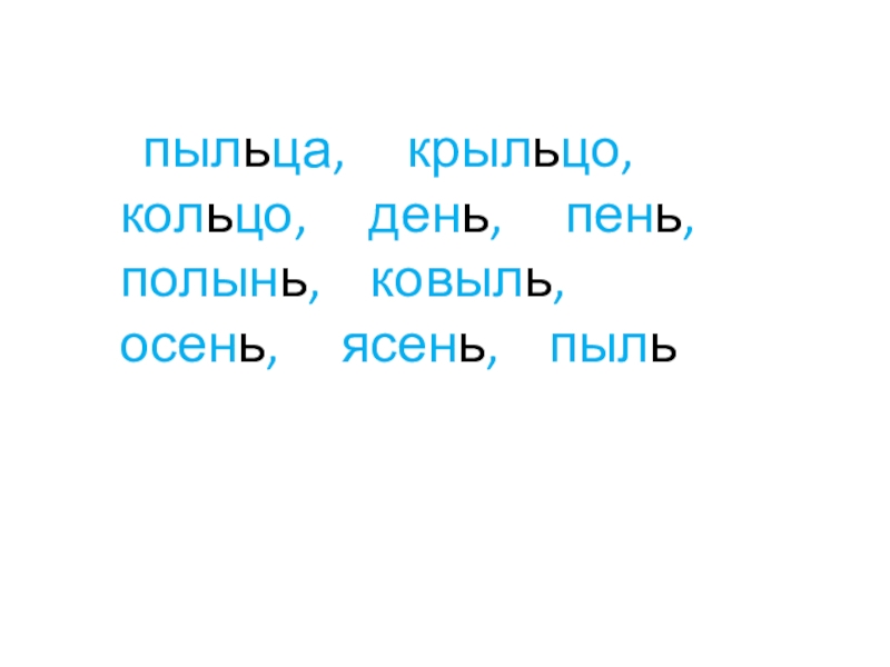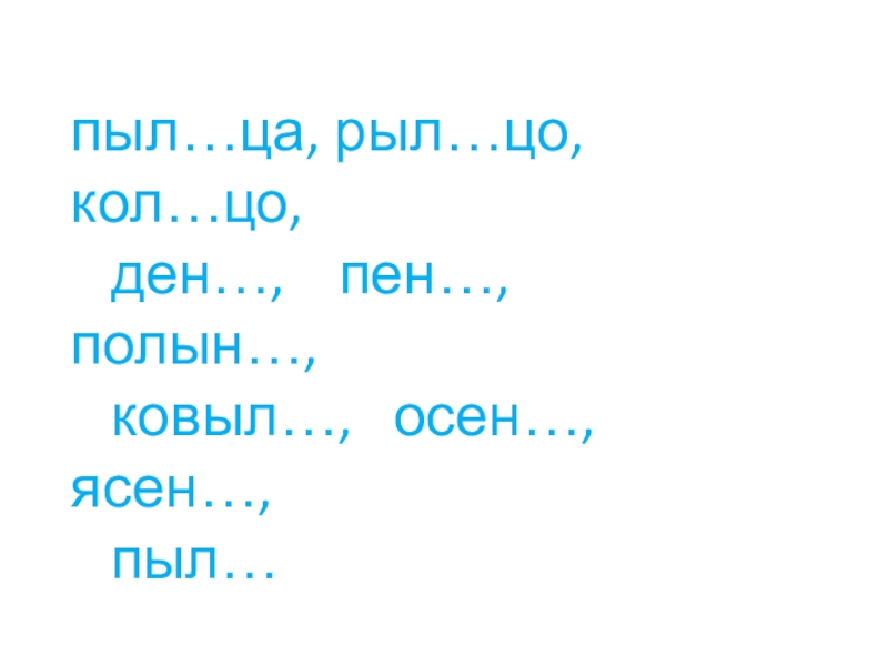 Слайд 16пыл…ца, рыл…цо, кол…цо,