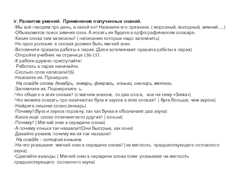 V. Развитие умений. Применение полученных знаний.