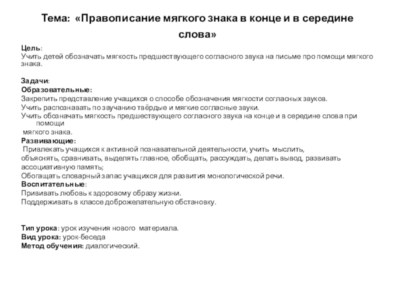 урока. ( Мягкий знак в конце слова)
