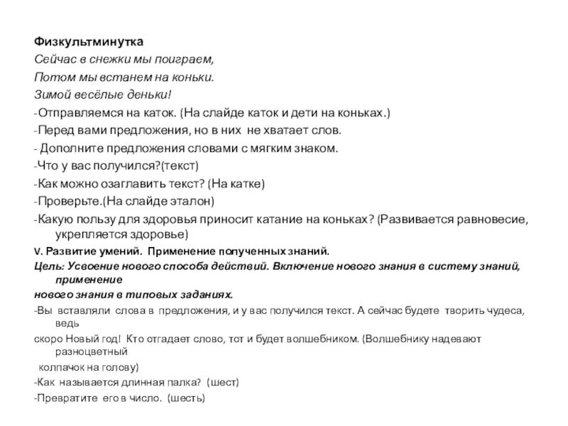 Цель: Усвоение нового способа действий. Включение нового знания в систему знаний, применение
