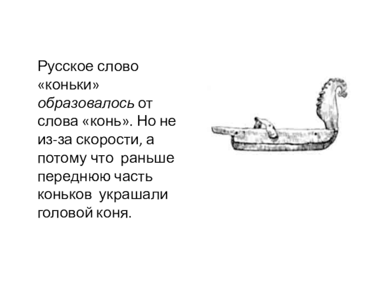 Слайд 11Русское слово «коньки» образовалось от слова «конь». Но не из-за скорости,
