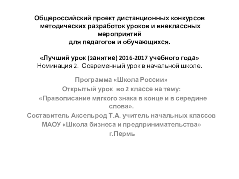 Номинация 2. Современный урок в начальной школе.