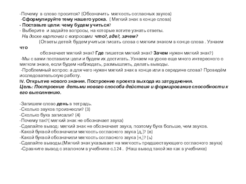 -Мы с вами поставили цели и будем их достигать. Узнаем на уроке еще много интересного о мягком знаке, если будем наблюдать, размышлять, делать выводы.