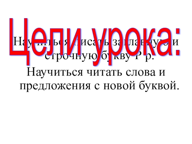 Научиться писать заглавную и строчную букву Р р.Научиться читать слова и предложения с новой буквой.Цели урока: