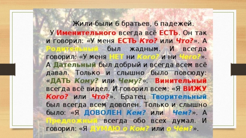 Презентация по русскому языку на тему: Падеж имени существительного (3 класс) Детские презентации