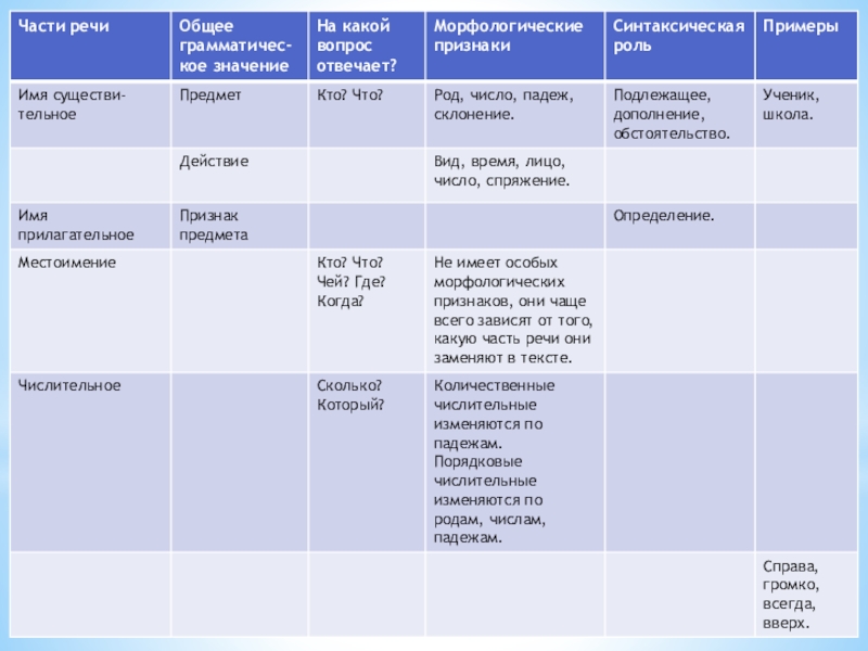Презентация, доклад по русскому языку на тему Наречие (4 класс)