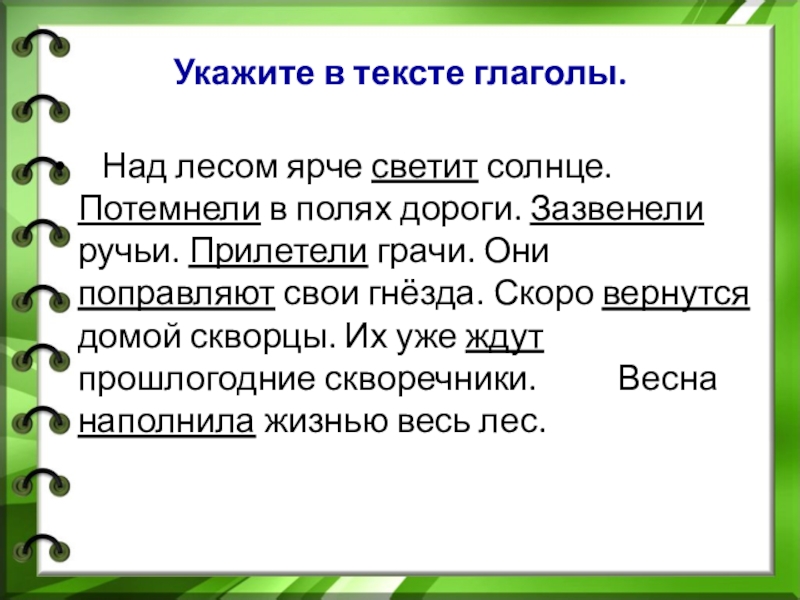 Укажите в тексте глаголы.