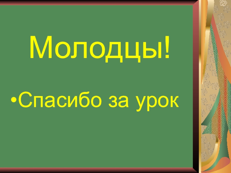 Молодцы!Спасибо за урок