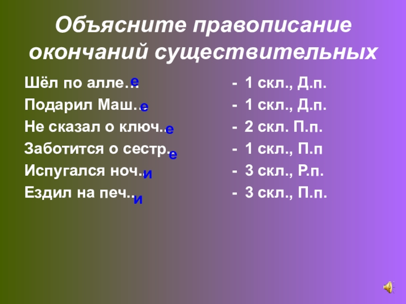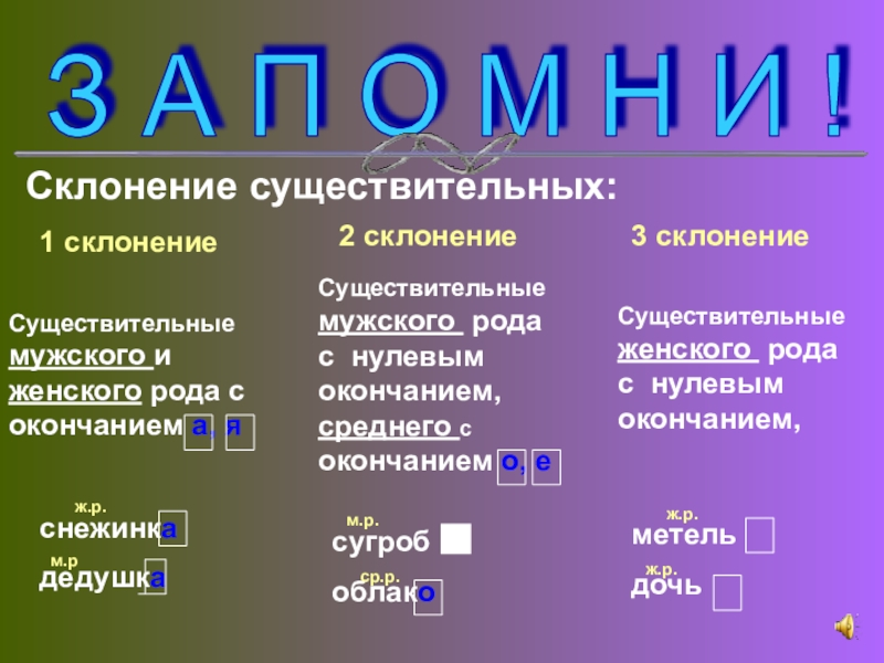Существительные мужского рода с нулевым окончанием, среднего с окончанием о, е