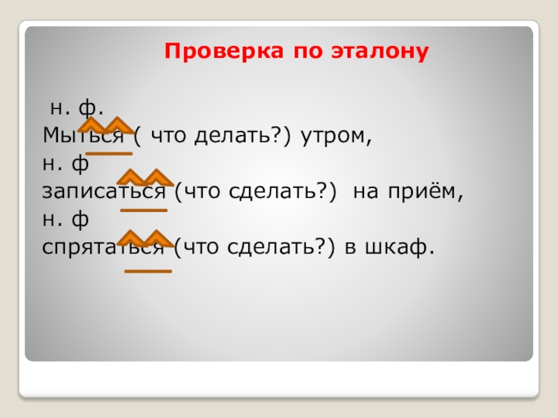 Проверка по эталону н. ф.Мыться ( что делать?) утром,