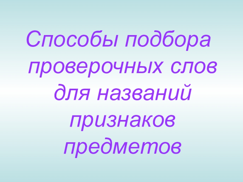 Презентация, доклад по русскому языку на тему Способы подбора проверочных слов для названий признаков предметов