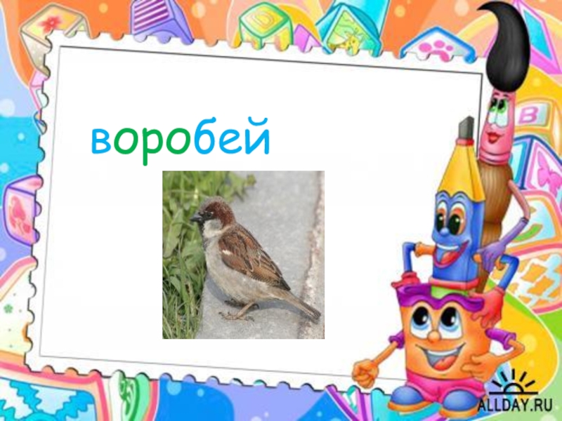Словарь: ворона, сорока, воробей, соловей, корова, молоко.