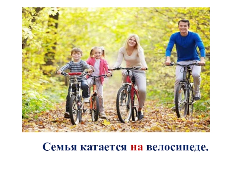 Слайд 5Семья катается на велосипеде.
