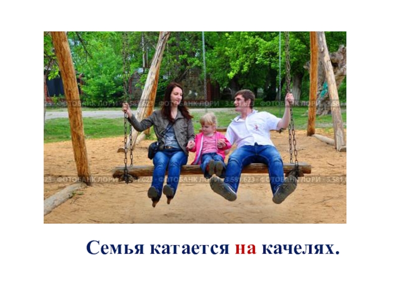 Слайд 6Семья катается на качелях.