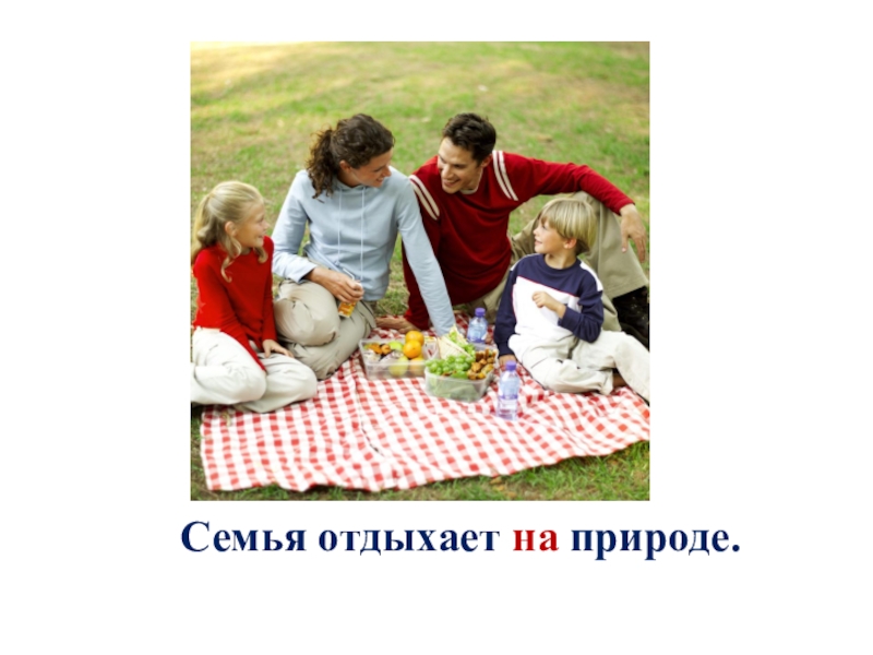 Слайд 2Семья отдыхает на природе.