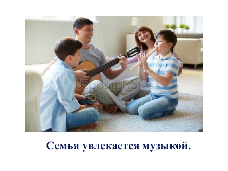 Слайд 7Семья увлекается музыкой.