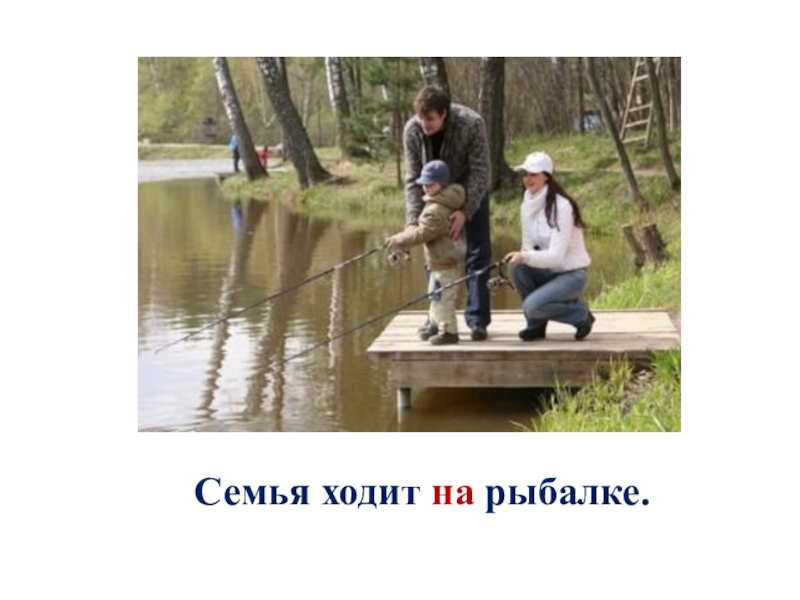 Слайд 3Семья ходит на рыбалке.