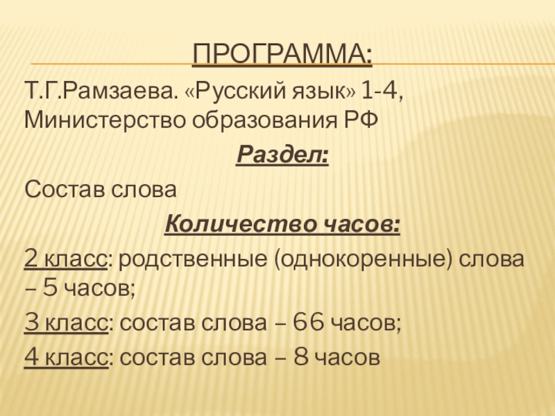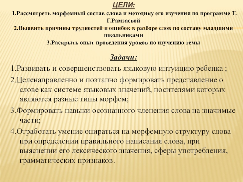 1.Рассмотреть морфемный состав слова и методику его изучения по программе Т.Г.Рамзаевой