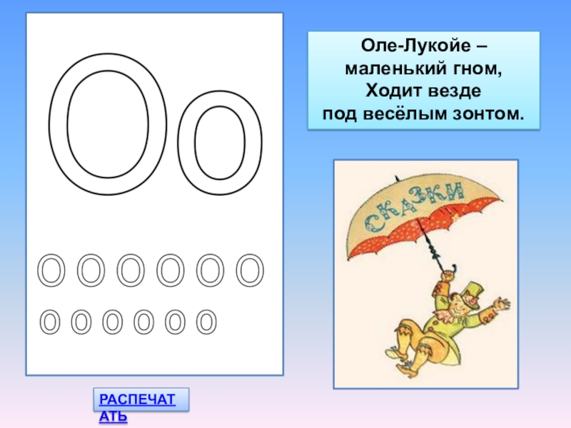 РАСПЕЧАТАТЬОле-Лукойе – маленький гном, Ходит везде под весёлым зонтом.
