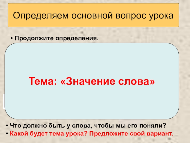 Определяем основной вопрос урока