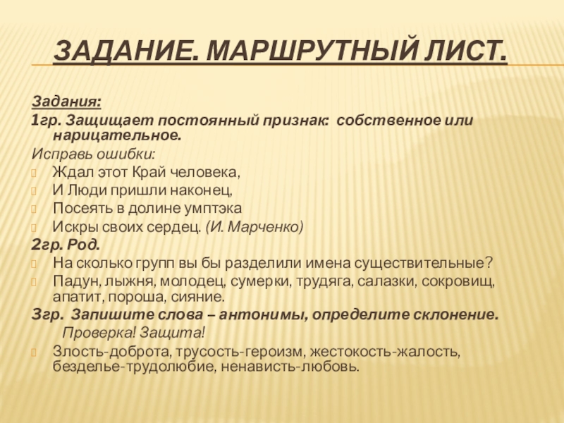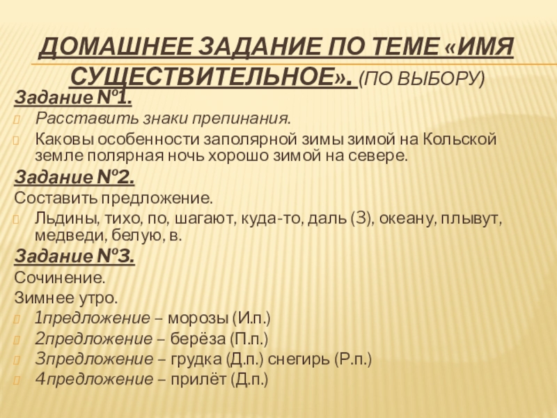 Слайд 10Домашнее задание по теме «Имя существительное». (по выбору)