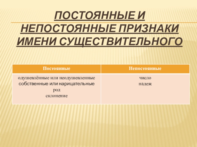 Слайд 4Постоянные и непостоянные признаки имени существительного