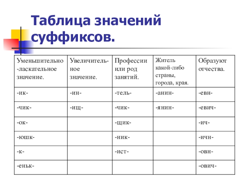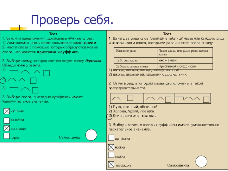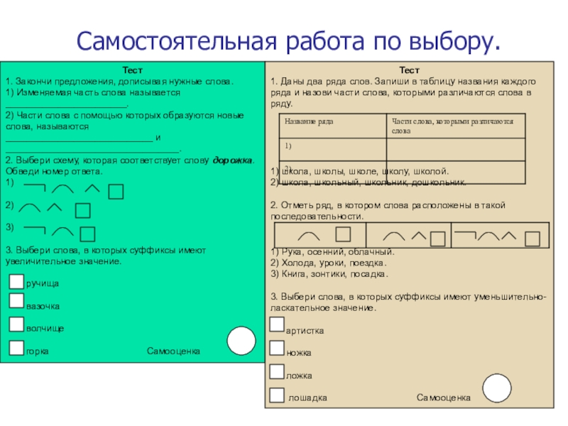 1. Даны два ряда слов. Запиши в таблицу названия каждого ряда и назови части слова, которыми различаются слова в ряду.