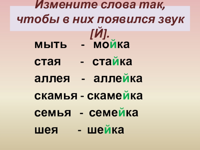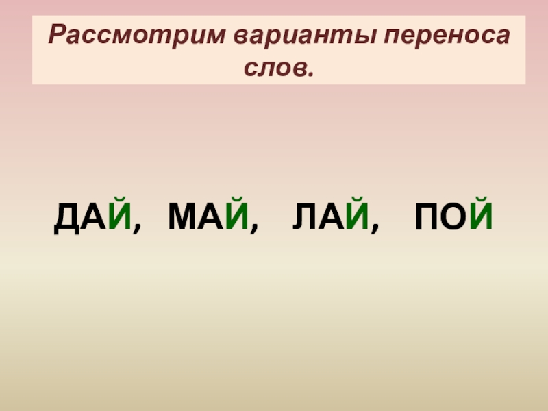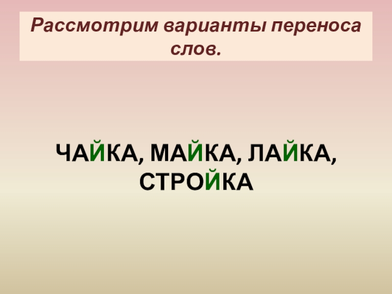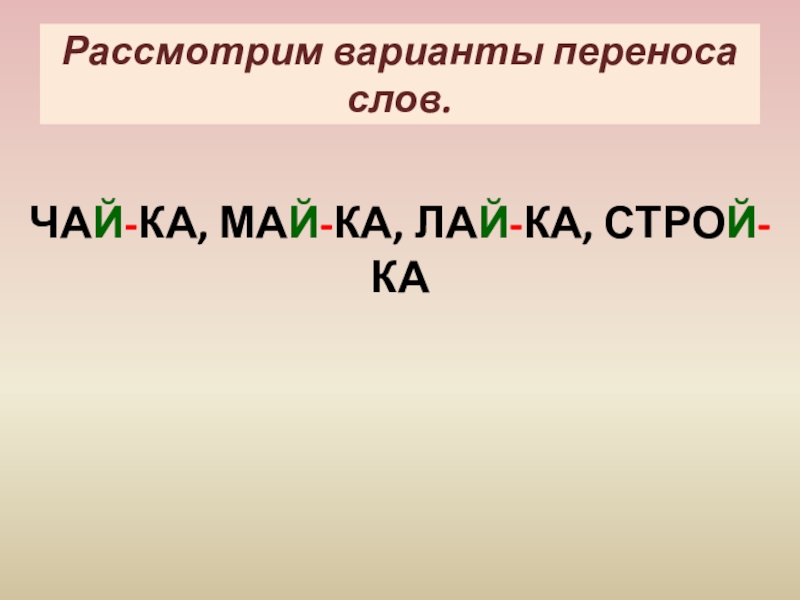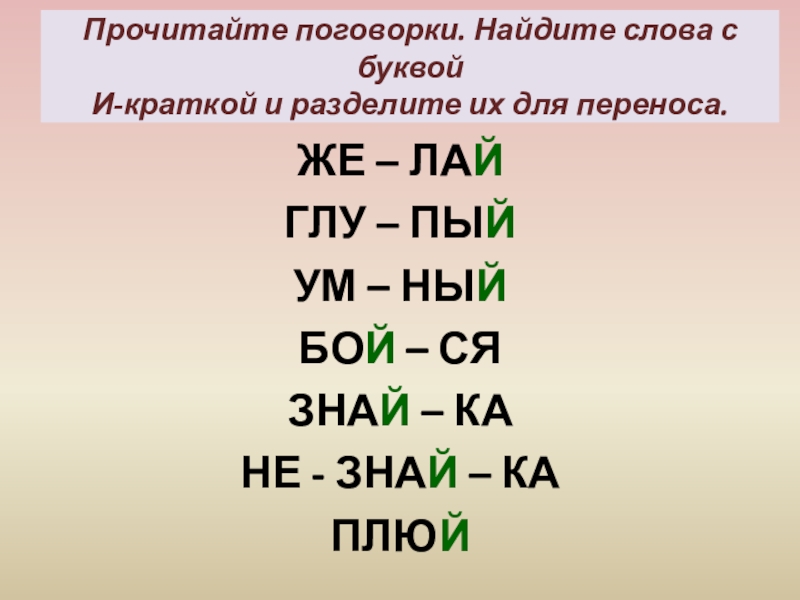 Разделите пары слов на слоги: