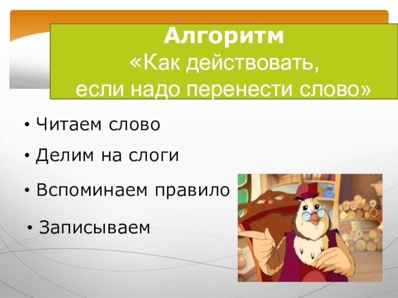 Слайд 18Алгоритм «Как действовать, если надо перенести слово»