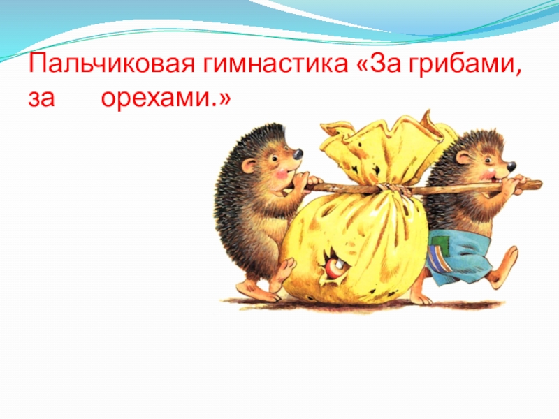 Слайд 5Пальчиковая гимнастика «За грибами, за орехами.»