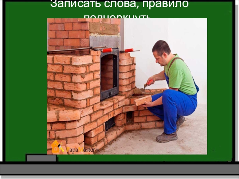 Слайд 12Записать слова, правило подчеркнуть.