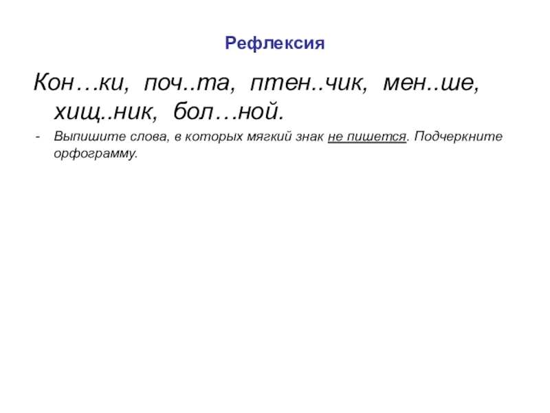 ЧК,ЧН, НЧ, ЩН,ЧТ ПИШИ БЕЗ МЯГКОГО ЗНАКА
