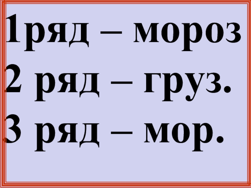 1ряд – мороз2 ряд – груз.3 ряд – мор.