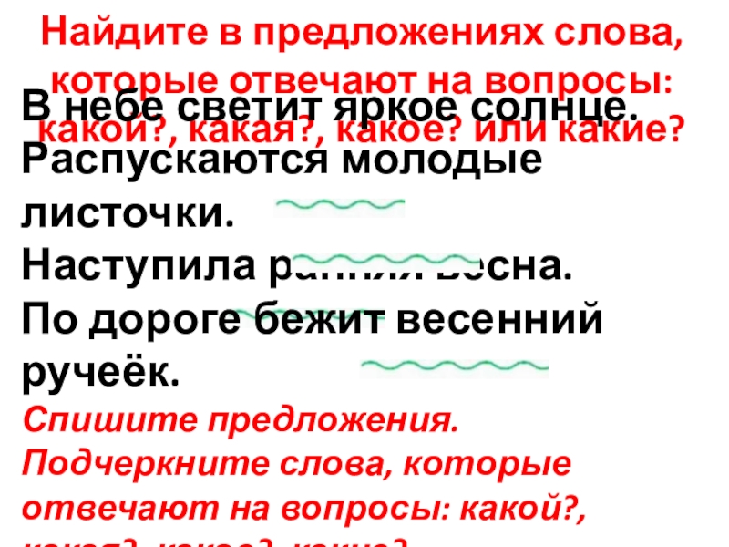 Подчеркните слова, которые отвечают на вопросы: какой?, какая?, какое?, какие?